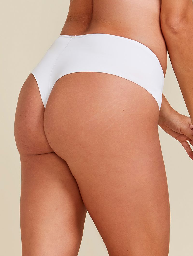 • Calcinha fio dental em microfibra de poliamida com elastano • Modelagem com laterais largas duplas que emendam com as costas formando o fio • Frente em tecido duplo • Cavas frente e cintura com acabamento em elástico confortável • Fundo 100% Algodão
