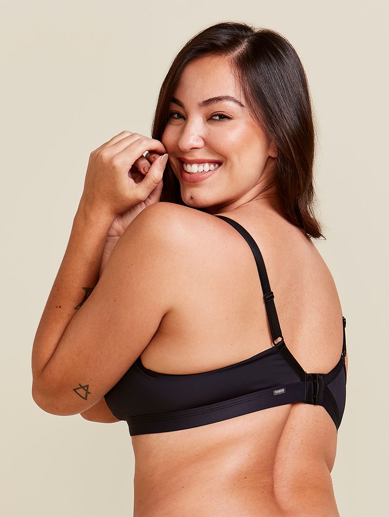 • Sutiã básico com bojo em espuma • Sem aro • Laterais médias • Alças fixas e reguláveis • Colchete duplo com quatro regulagens • Nos tamanhos maiores, as alças são mais largas • Média sustentação • Forro 100% poliéster • Desenvolvido em microfibra com elastano